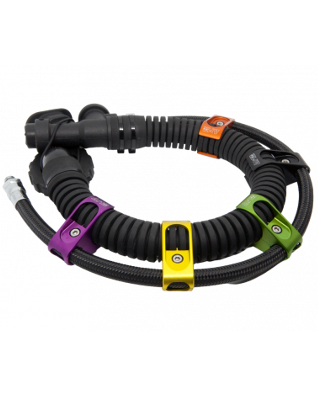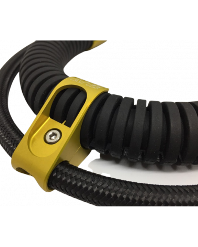 Le R-CLIP d'AMX-TEKnology est spécialement conçu pour simplifier le routage du flexible de système direct sur les wing's utilisées dans les configurations tek. Sa conception en deux pièces en aluminium T6082 offre à la fois légèreté et robustesse. Grâce à sa fixation sécurisée avec une vis en inox M4, il reste solidement attaché au tuyau moyenne pression même lors des manipulations. De plus, sa compatibilité avec les flexibles de type Miflex garantit un glissement optimal et une utilisation fluide. Disponible en plusieurs couleurs, il permet également une personnalisation esthétique de votre équipement.